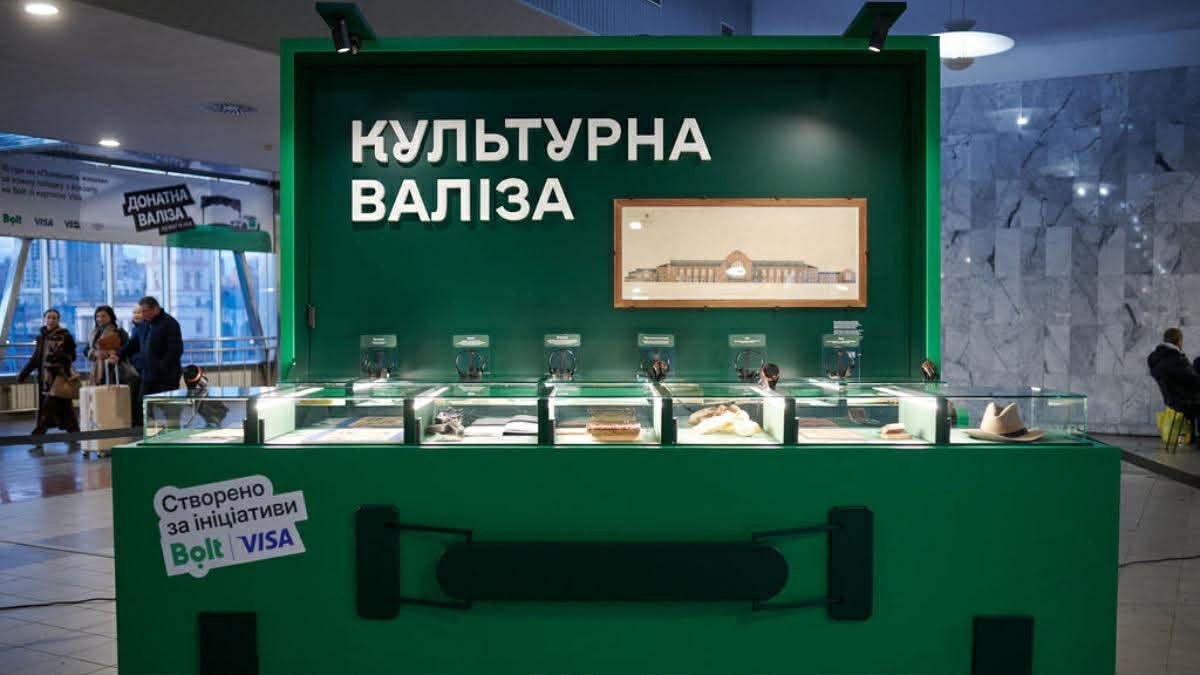 На Центральному київському залізничному вокзалі від сьогодні, 6 березня, для відвідувачів безкоштовно відкрито виставковий проєкт "Культурна валіза", створений онлайн-сервісом таксі Bolt спільно з Port of Culture.